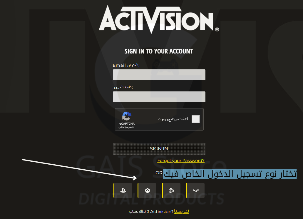 تسجل الدخول في موقع اكتفجن من خلال الايدي او من حساب اكتفجن عبر هذا الرابط https://s.activision.com/activision/login